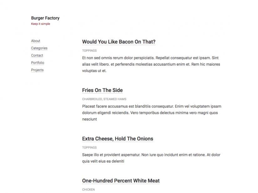 Escolher temas por funcionalidade também é uma tarefa inútil. Mesmo projetos diferentes do mesmo tipo precisam de funções diferentes. Além disso, todos os modelos têm a mesma funcionalidade em grande parte.