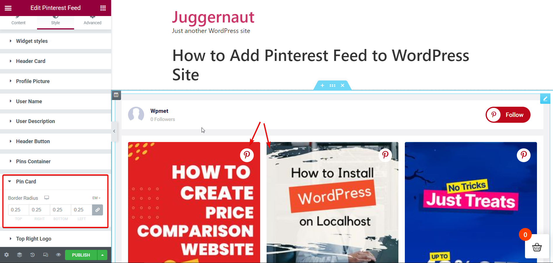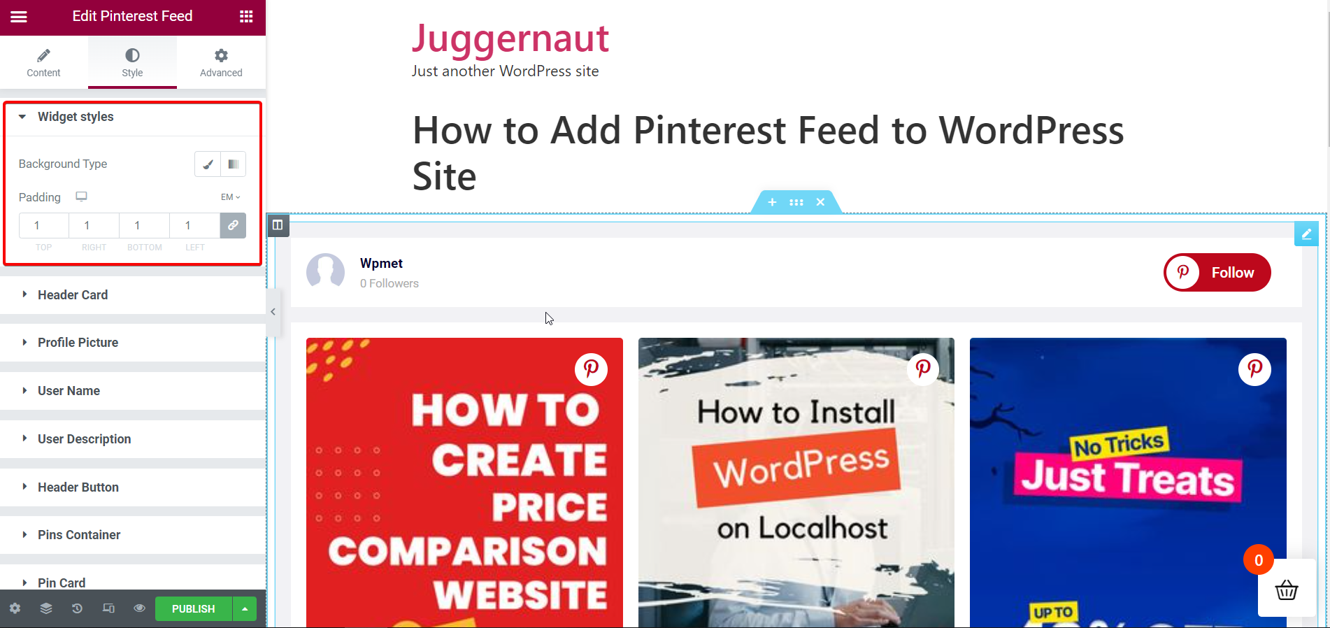 Como adicionar feed do Pinterest ao seu site WordPress com o ElementsKit: