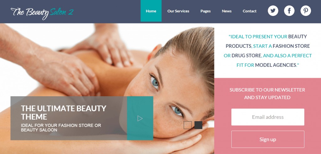 Beauty Salon 2 como layout de estilo metro que você vai amar ou odiar. O destaque deste tema para mim é a localização da chamada para ações, que está acima da dobra e certamente levará a uma conversa mais alta. Além disso, vale a pena mencionar que esse tema funciona como uma loja de comércio eletrônico. Portanto, se você tiver seus próprios produtos de marca, poderá vendê-los com o Salão de Beleza 2 para uma experiência perfeita. Outras características notáveis incluem flexslider, retina pronta e compatibilidade multilíngue.