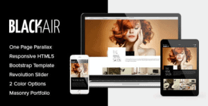 Blackair é um tema de site limpo e moderno, totalmente responsivo, pronto para retina e habilitado para paralaxe de uma página usando a estrutura Bootstrap 3+ juntamente com CSS3 e HTML5 para estilistas, salões de beleza e cabeleireiros.