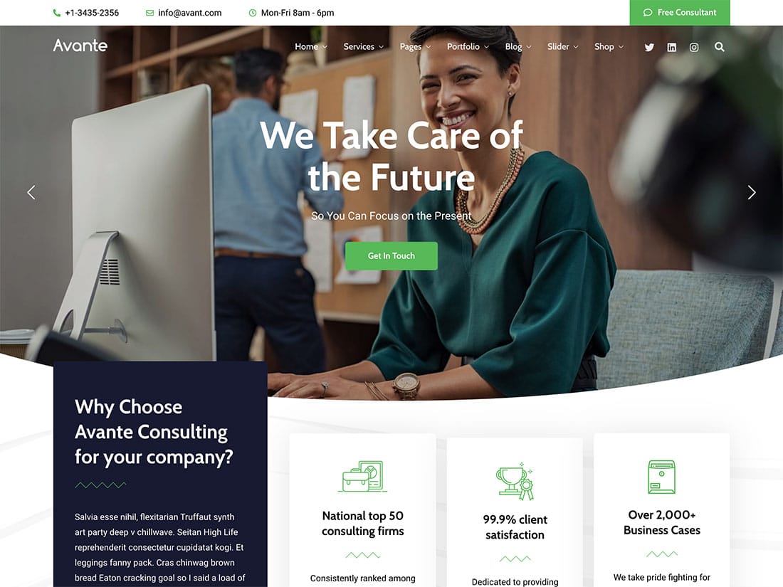 Se você deseja que grandes clientes confiem em sua empresa com seus negócios, é importante mostrar a eles que você está falando sério. Uma das melhores maneiras de fazer isso é com um site profissional. Um tema poderoso para empresas de consultoria, como a Avante, pode ser o ingresso.