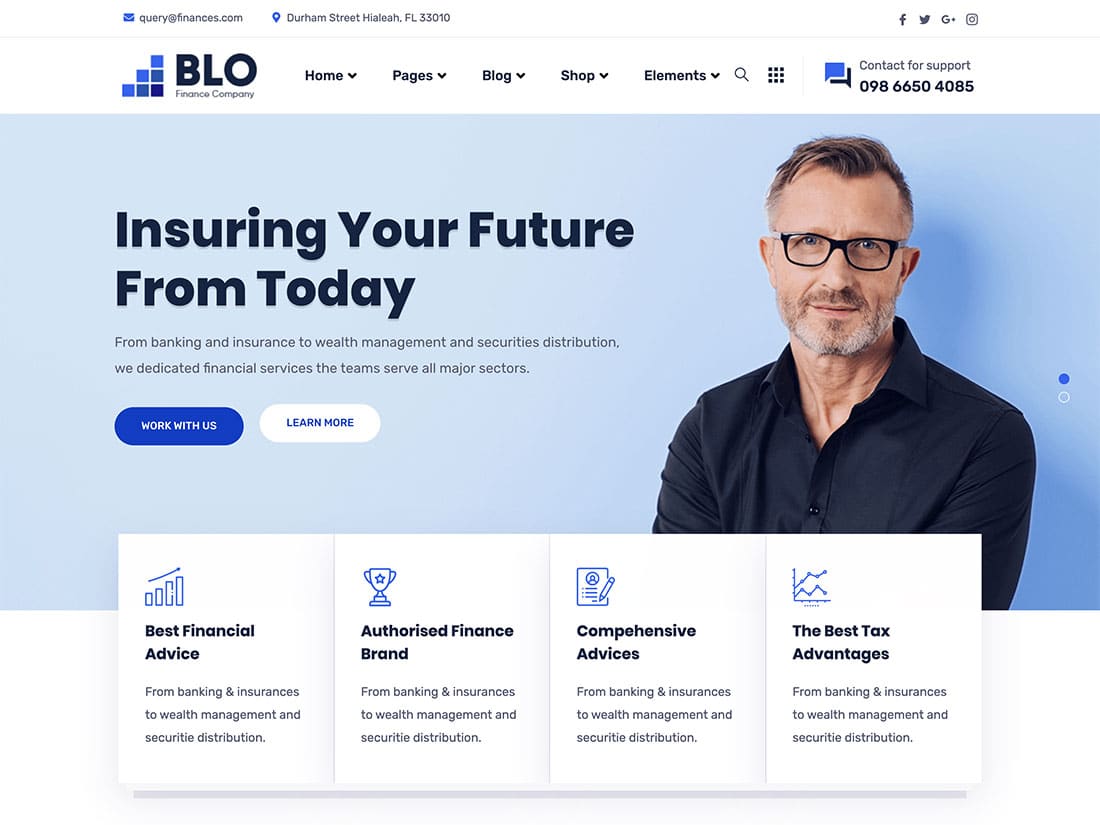 Para que sua empresa inspire confiança, você precisa compartilhar o máximo possível de informações sobre ela. O BLO inclui várias ferramentas que oferecem controle total sobre o estilo do seu site, incluindo cabeçalhos e rodapés personalizados, integração com plataformas de marketing por e-mail e muito mais. O tema também inclui os plugins Elementor Page Builder, Contact Form 7 e Slider Revolution.