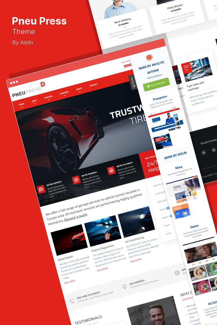 O tema PneuPress foi projetado para sites relacionados a concessionárias de pneus, concessionárias de automóveis, oficinas mecânicas, oficinas mecânicas, oficinas, estações de inspeção de automóveis e oficinas de faz-tudo.