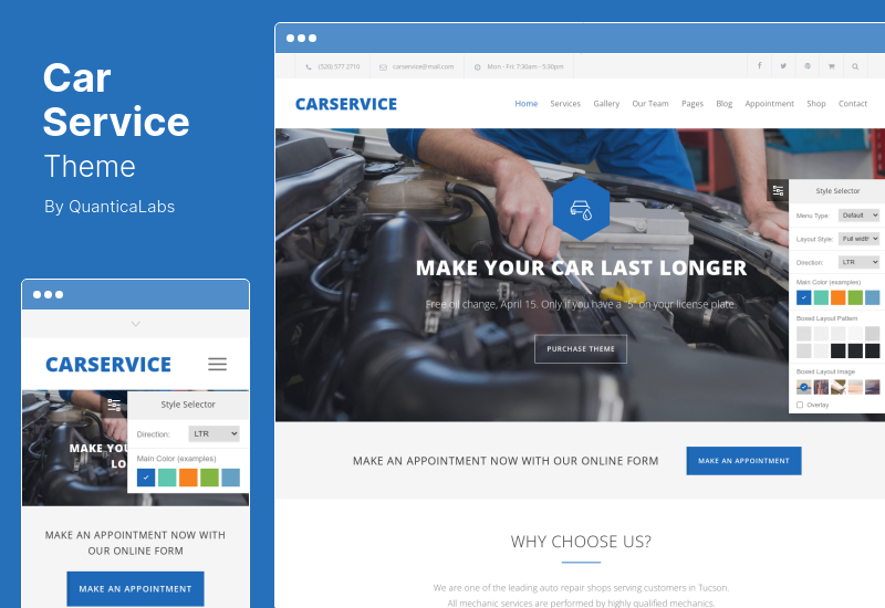 O tema Krsel WordPress foi especialmente desenvolvido para empresas que operam no mercado de reposição automotivo, como serviço de carro, limpeza de carro, lavagem de carro, substituição de pneu/pneu ou bateria, manutenção programada e reparo de automóveis.