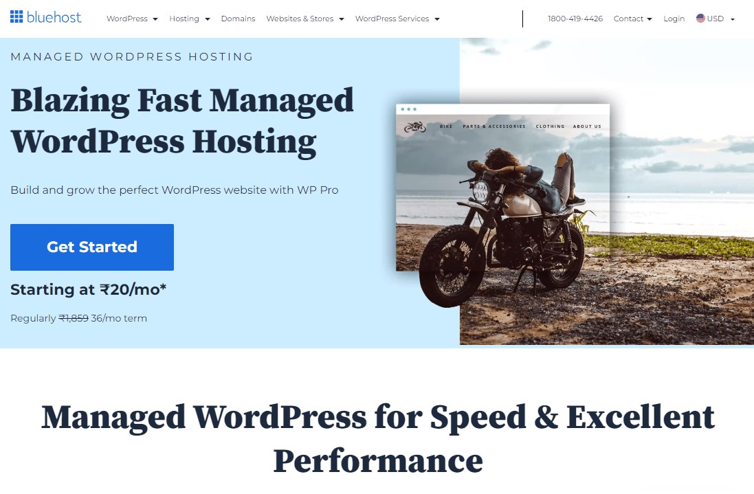 Bluehost é mais conhecido por sua hospedagem WordPress barata, mas também oferece planos gerenciados de hospedagem WordPress. Esses planos são mais caros do que a hospedagem compartilhada do Bluehost, mas permanecem mais baratos do que a maioria dos outros provedores gerenciados de WordPress, especialmente se você precisar hospedar muitos sites.