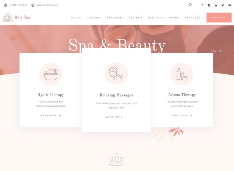 Rela é fácil de usar e altamente personalizável para criar sites exclusivos de spa e massagem com o WordPress.