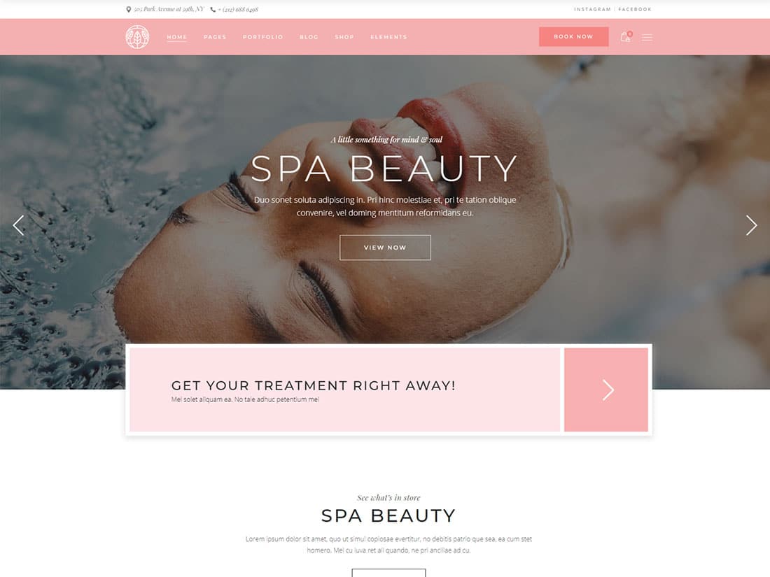 O TheGem está repleto de uma coleção impressionante de recursos e designs, mas são as duas demos criadas para esse propósito que ajudaram a ganhar um lugar nesta coleção dos melhores temas WordPress de spa e salão de beleza.