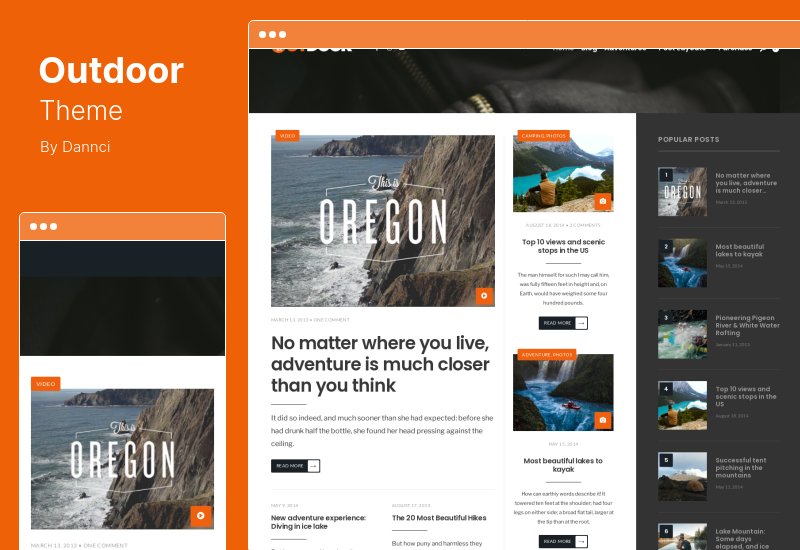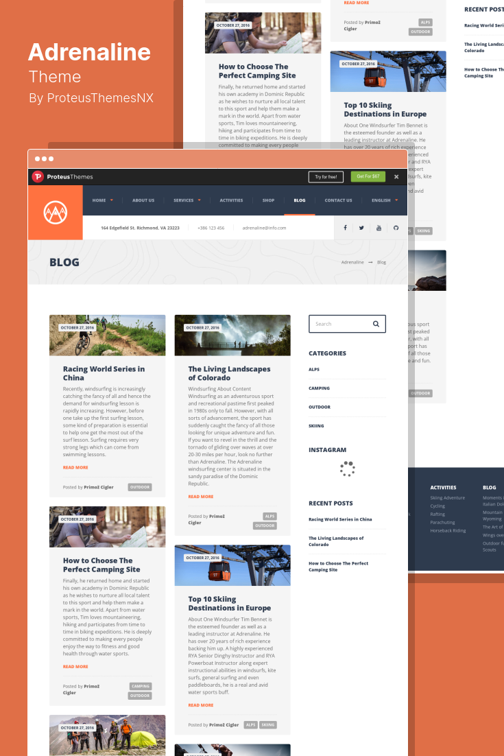 Além de seu design elegante e layout totalmente responsivo, o tema Outdoor é apropriado para blogs, revistas, esportes e sites de caminhadas. As suas funcionalidades incluem um blog e uma área de revistas.