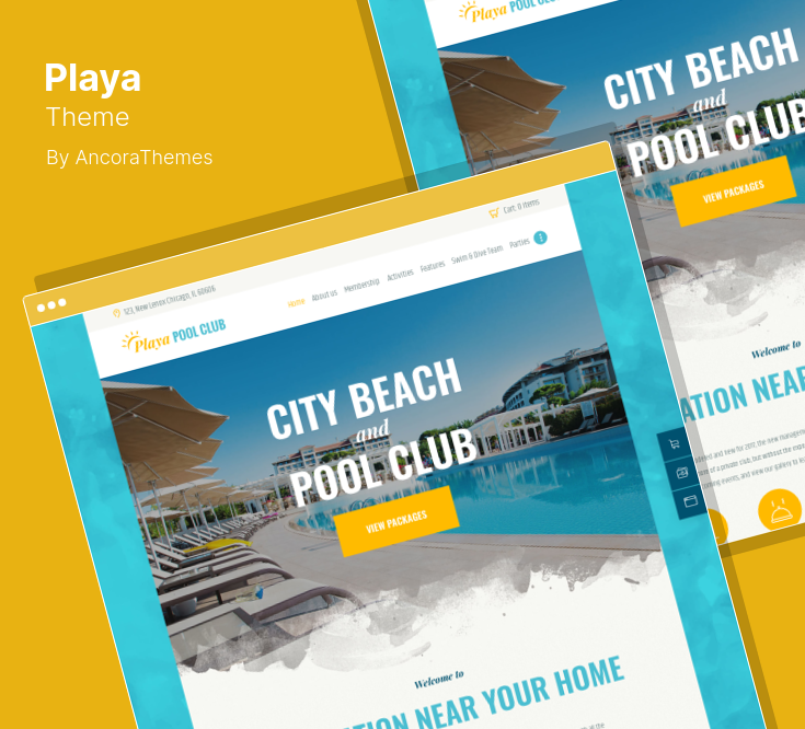 O tema Playa WordPress apresenta um design animado e ensolarado que o torna adequado para uso com praias da cidade, clubes de praia, piscinas, resorts de verão ou parques aquáticos.