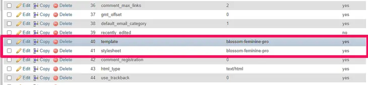 Em seguida, você verá diferentes linhas de “option_names”. Procure o modelo de opções e a folha de estilo na lista.