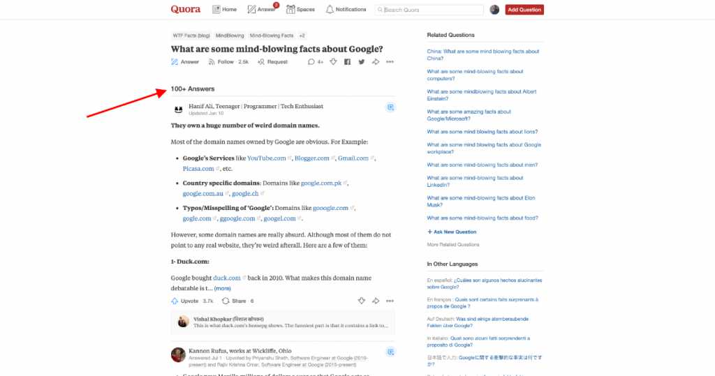 Tome o Quora como exemplo. Um site de perguntas e respostas relativamente simples, mas atrai centenas de milhões de visitantes mensais. Além disso, o Quora tem uma comunidade extremamente ativa e movimentada. Muitos membros da comunidade não se importam em aprofundar-se para obter respostas específicas.