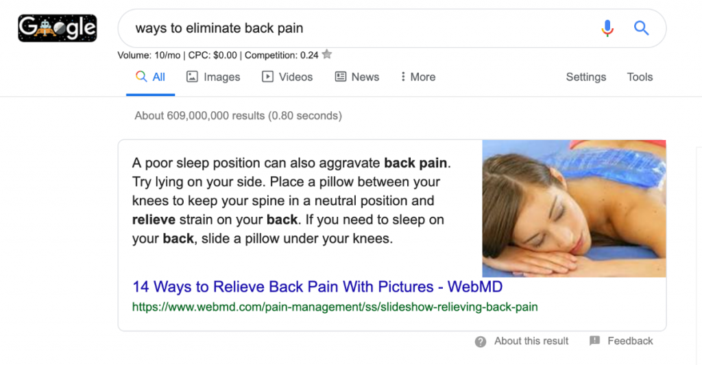 Em termos simples, o Google está optando por destacar uma resposta específica a uma pergunta de qualquer site de conteúdo. A resposta é muitas vezes um único parágrafo de um conteúdo inteiro. Mas não é incomum que o Google use várias frases juntas. Parece que é mais importante que as palavras-chave sejam uma correspondência do que qualquer outra coisa.
