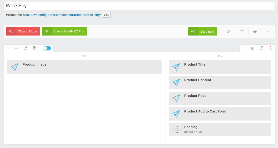 O tema WordPress Configurator vem com o criador de produto único WooCommerce, você pode fazer o layout que deseja