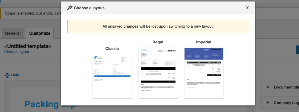 Classic , Rega l e Imperial são três dos modelos de fatura padrão oferecidos pelo plugin.