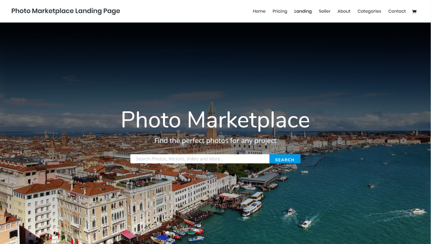 Photo Marketplace é um pacote de layout da Elegant Themes. Este layout foi projetado para criar uma loja online para vender fotos de vários colaboradores. Possui 7 páginas, incluindo uma página de categorias, página de preços e página para vendedores individuais. Tem fundos claros, muitos módulos estilizados e um design minimalista. As imagens estão incluídas e são gratuitas para uso em seus projetos.