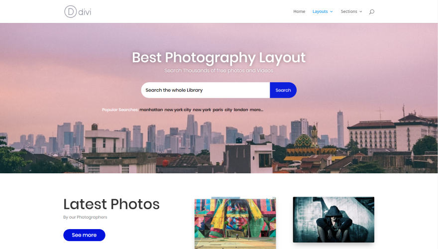Divi Layouts para sites de fotografia