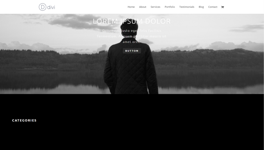 A página inicial de fotografia é um layout de uma página da Elegant Themes para criar uma página de serviços simples para o seu negócio de fotografia. Possui vários arquivos para que você possa carregar apenas as seções individuais que deseja ou todas as seções em uma página inicial completa. A seção principal mostra uma imagem de plano de fundo em tela inteira em paralaxe com o título, a frase de efeito e um botão na sobreposição. As categorias são exibidas com imagens em quatro colunas e títulos sobre cada imagem. Depoimentos a seguir que você pode exibir em três colunas ou em uma única coluna. Também estão incluídos tabelas de preços estilizadas, um formulário de contato e um mapa de largura total.