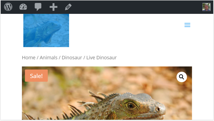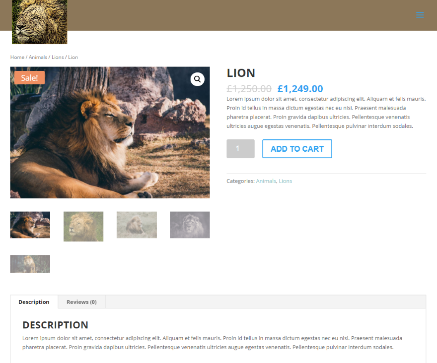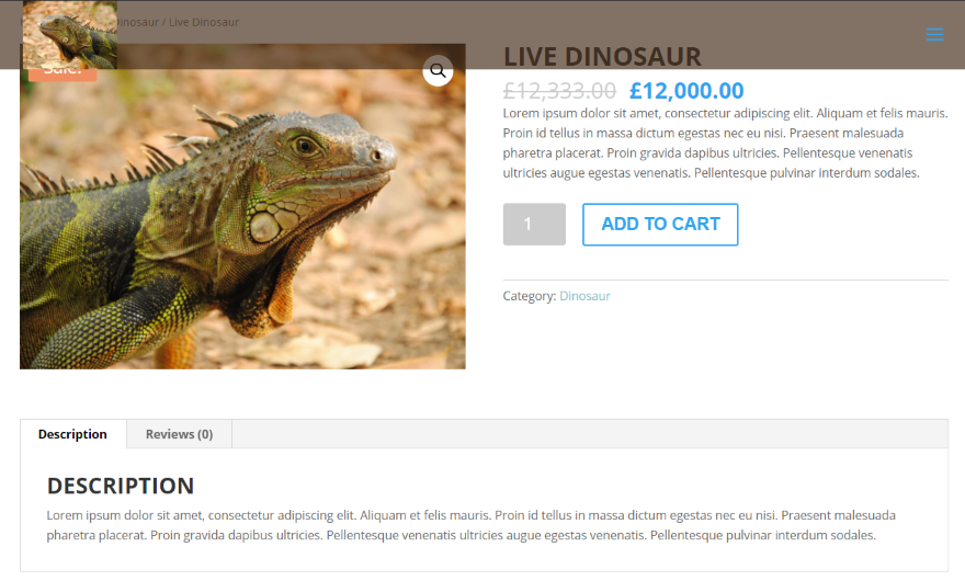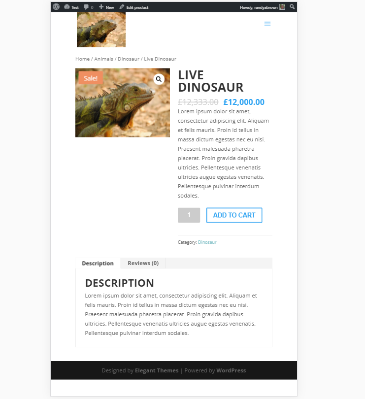 Ele também funciona nas páginas de produtos WooCommerce. Ele funciona exatamente da mesma forma que as páginas normais por padrão, então não há nada para configurar. Este é o logotipo regular com Saliência Grande.