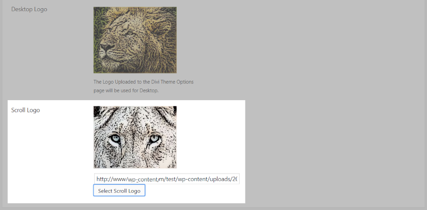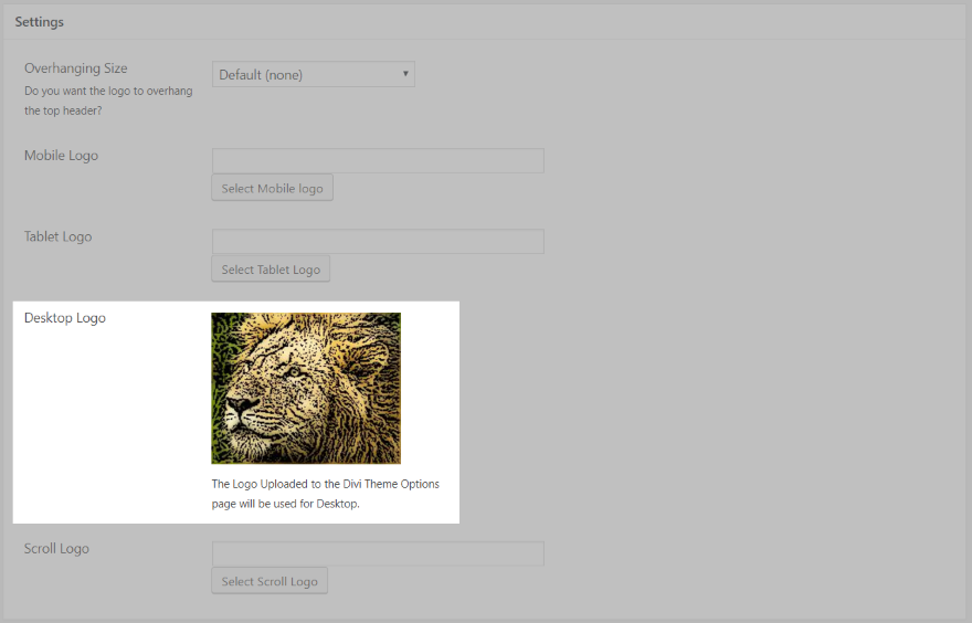 Para o logotipo da área de trabalho, usei uma imagem artística de um leão. Esta é a versão padrão do logotipo sem saliência. Este logotipo deve ser carregado nas configurações de tema do Divi.