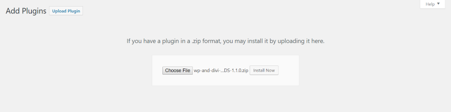 Faça upload e ative o plugin normalmente. Estou usando a versão 1.1.0 com Divi versão 3.17 e WordPress 4.9.8.