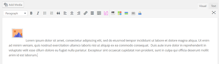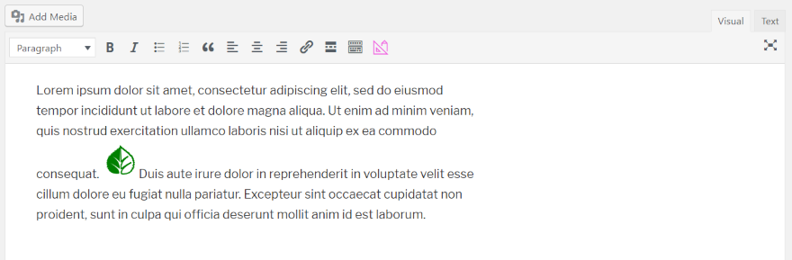 O editor de ícones do WordPress também está disponível no módulo de texto Divi. Este editor funciona exatamente da mesma forma que qualquer tema WordPress.
