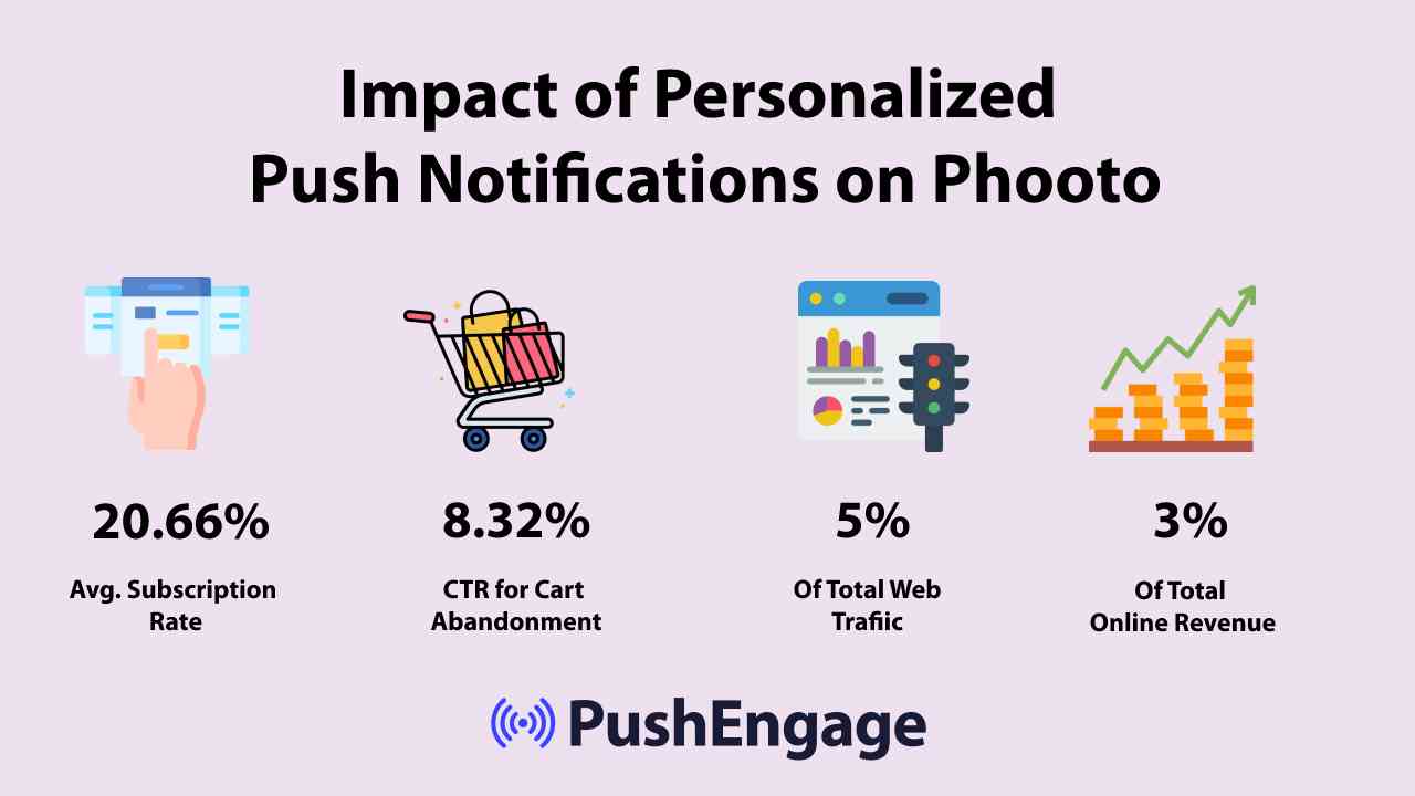 As notificações push ajudam você a aumentar o tráfego e o envolvimento do seu site no piloto automático. E se você administra uma loja online, o PushEngage também ajuda a aumentar suas vendas, ajudando a criar notificações push de comércio eletrônico automatizadas.