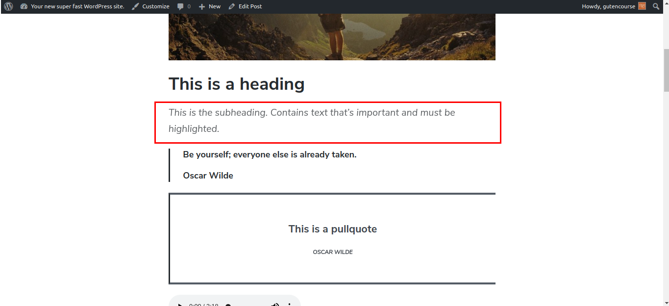 A Imagem de Capa é um bloco que combina uma Imagem com texto dentro. É comumente usado como banner em uma postagem, mas pode ser colocado em qualquer lugar.