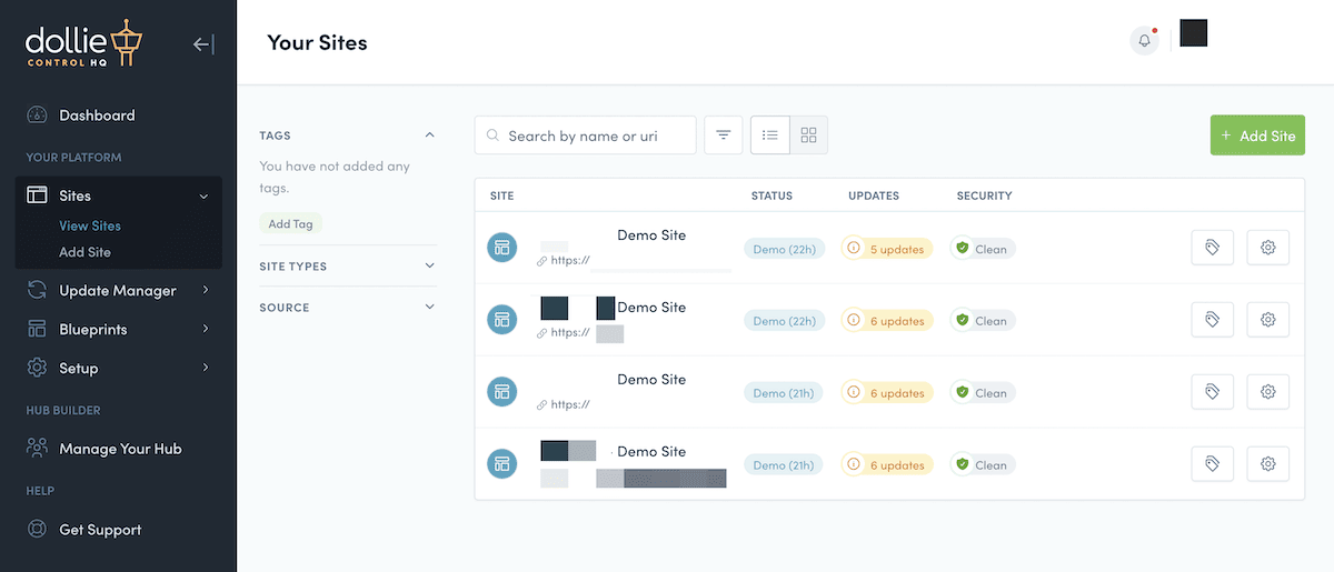 Na verdade, isso nos leva ao foco principal desta postagem. Embora Dollie ofereça algumas soluções diferentes para ajudá-lo a monetizar o gerenciamento do seu site – o Hub Builder e a nuvem privada – o Control HQ une tudo.