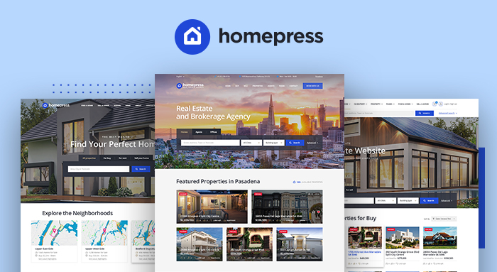 Nossa escolha é o tema WordPress imobiliário HomePress desenvolvido por StylemixThemes.