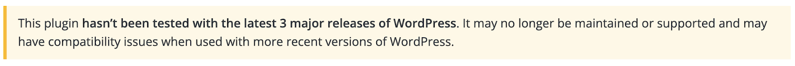 Se o plug-in que você está usando for da biblioteca WordPress.org, você pode visitar a página do plug-in e ver a última versão do WordPress com a qual foi testado. Se não tiver sido testado com a versão mais recente, você verá uma notificação na parte superior da página indicando isso: