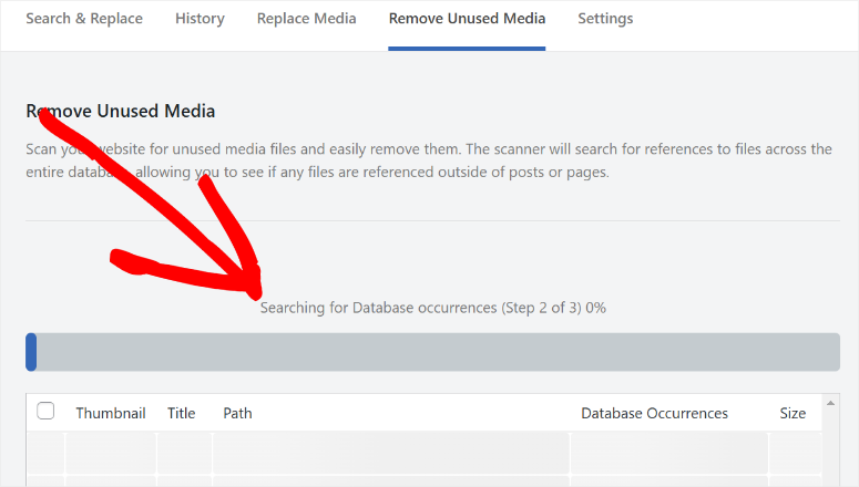 Agora, é hora de digitalizar seu site em busca de arquivos de mídia que não estejam mais em uso. Essa varredura mostra rapidamente quais arquivos de mídia estão ocupando espaço, facilitando a criação e otimizando seu site.