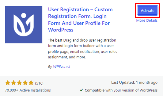 Em primeiro lugar, você deve instalar e ativar o plugin User Registration em seu site WordPress. Este popular plugin de formulário de registro para WordPress vem com um construtor simples de arrastar e soltar. Você pode adicionar quantos campos personalizados precisar ao formulário e personalizar cada campo.