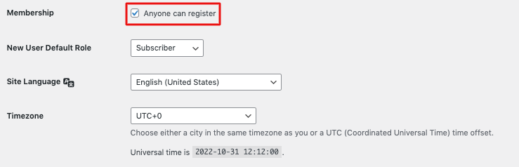 Primeiro, você precisa habilitar a opção “Qualquer um pode se registrar”. Para fazer isso, vá para Painel do WordPress → Configurações → Configurações gerais → Associação . E coloque a marca de seleção nele.