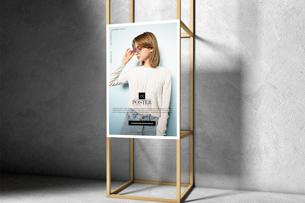 Os pôsteres são mais adequados para projetos internos e externos. Quer você o use para apresentar novos produtos, promover serviços incríveis, eventos musicais futuros e promoções semelhantes, os pôsteres são realmente incríveis. Se você precisa ter uma visualização realista dos designs de seus pôsteres, pode obter este recurso gratuito e usá-lo para projetos de pôsteres pessoais e comerciais. Esta maquete apresenta um pôster com moldura de madeira onde você pode adicionar seus próprios designs à cena através da camada de objeto inteligente. Esta maquete vem com um PSD em camadas para que você possa localizar e modificar facilmente os elementos. Possui dimensões de 4000 × 3200 pixels para uma aparência mais clara e moderna.