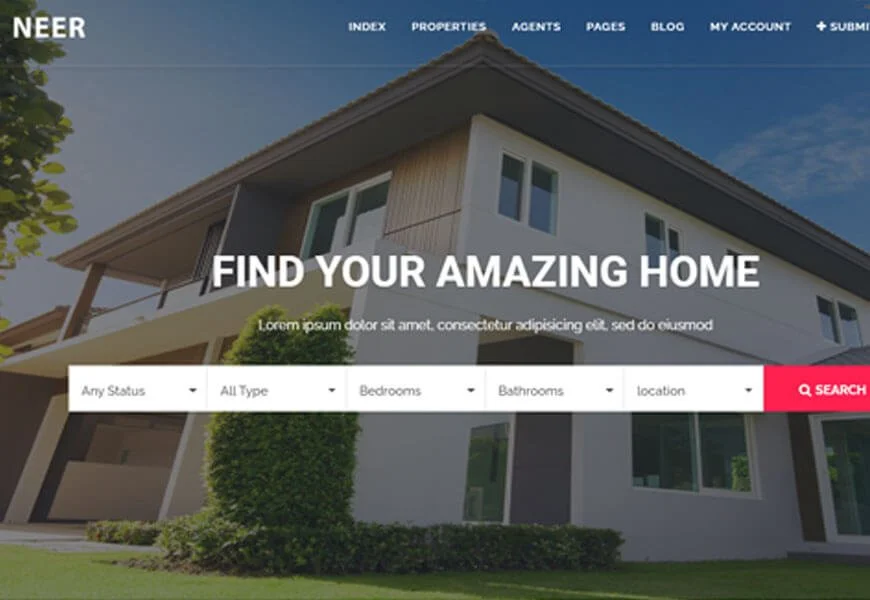 NEER é um dos melhores templates de sites imobiliários. Tem um layout excepcional, profissional, contemporâneo e limpo. O modelo é altamente personalizável e permite personalizá-lo extensivamente para que você possa marcar seu site. NEER tem 7 homepages excepcionais, que você pode escolher para sua identidade ideal. Você pode decidir como deseja exibir propriedades individuais com as opções de 3 layouts de página de propriedade única.