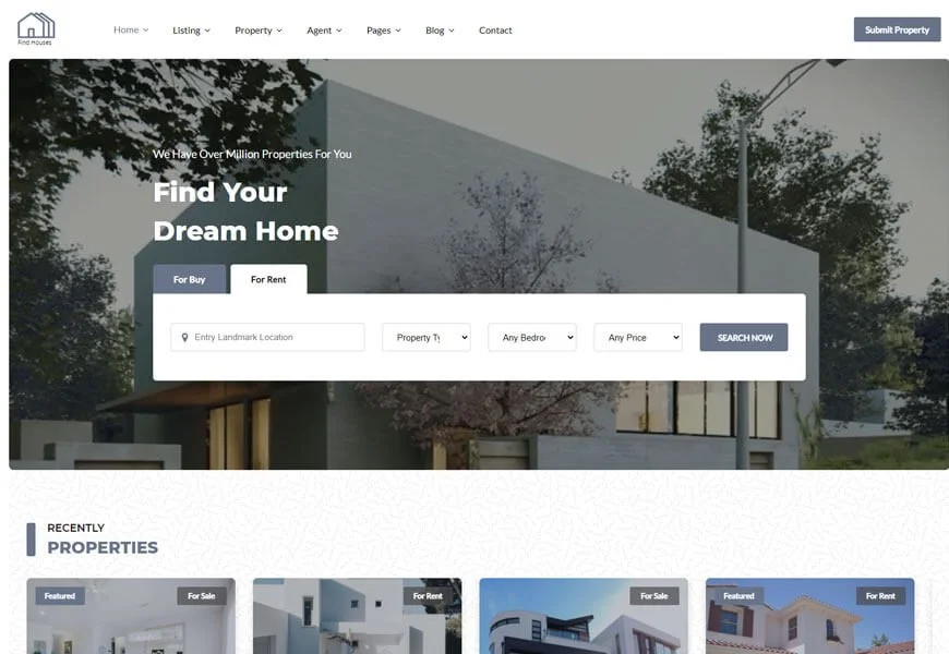 Com FindHouse, você obtém um modelo de site imobiliário excepcional e de alta qualidade baseado em código HTML com todas as funções e recursos que você pode precisar. No entanto, as funções que lhe faltam, é compatível com os plugins que fornecem essas funções. Com FindHouse, seu site recebe 64 arquivos HTML e PSD para diversas funções do site, incluindo páginas e elementos. Desses arquivos, existem 10 homepages com múltiplos elementos que irão direcionar sua escolha.
