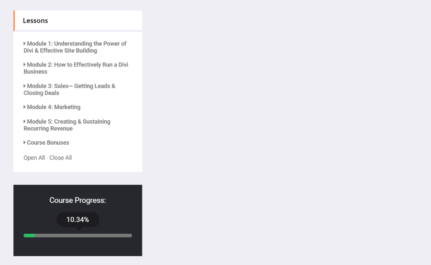 O Divi Business Course é um excelente curso para aprender como iniciar e manter um negócio. Inclui muitas informações sobre a Divi, mas acho que é um bom curso para administrar um negócio baseado em serviços online em geral. É ótimo para agências e solopreneurs e as informações o ajudarão a parecer mais profissional ao lidar com clientes.