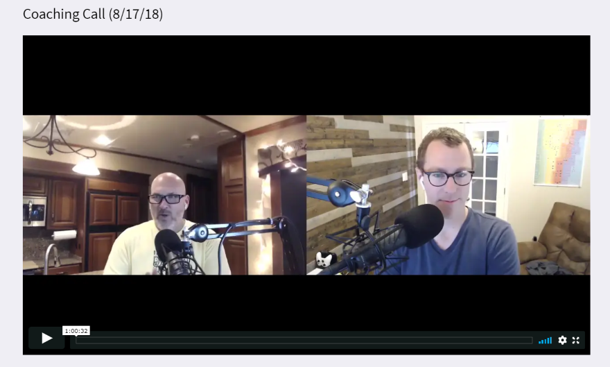 Os instrutores fazem ligações semanais de coaching em grupo em formato de webinar. Isso inclui um formulário para que você possa enviar uma pergunta (seu nome pode ser mantido anônimo, se preferir) que será respondida na chamada de treinamento. Os webinars são gravados para que você possa assisti-los quando quiser, incluindo os das aulas anteriores. A maioria tem mais de uma hora.
