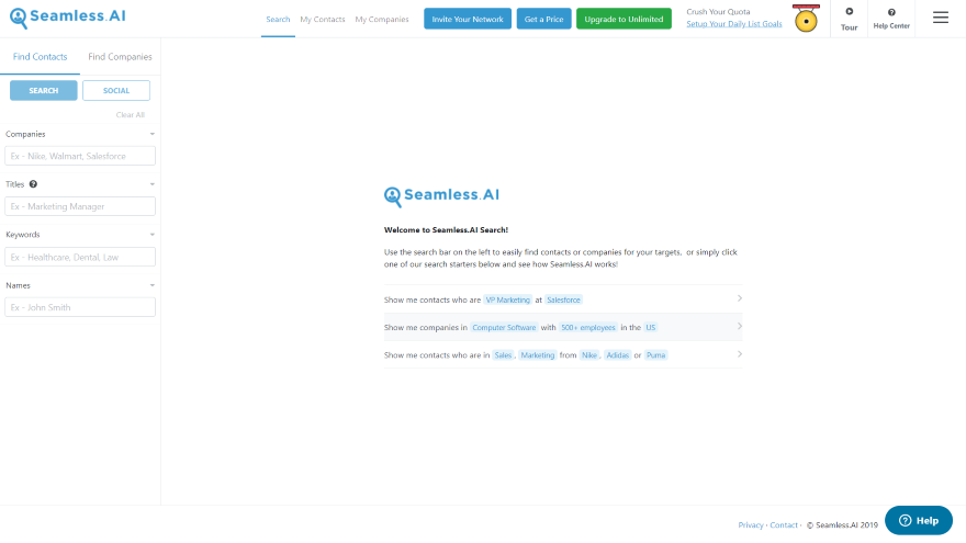 Publicados: 2019-10-07Seamless AI é uma plataforma de inteligência de marketing para encontrar e desenvolver leads de vendas. Isso torna mais fácil encontrar pessoas, obter e-mails e números de telefone e usar insights para construir relacionamentos. Importa diretamente para o seu CRM (Customer Relationship Management). Neste artigo, vamos dar uma olhada em Seamless AI, ver o que é, o que pode fazer e como é fácil de usar.