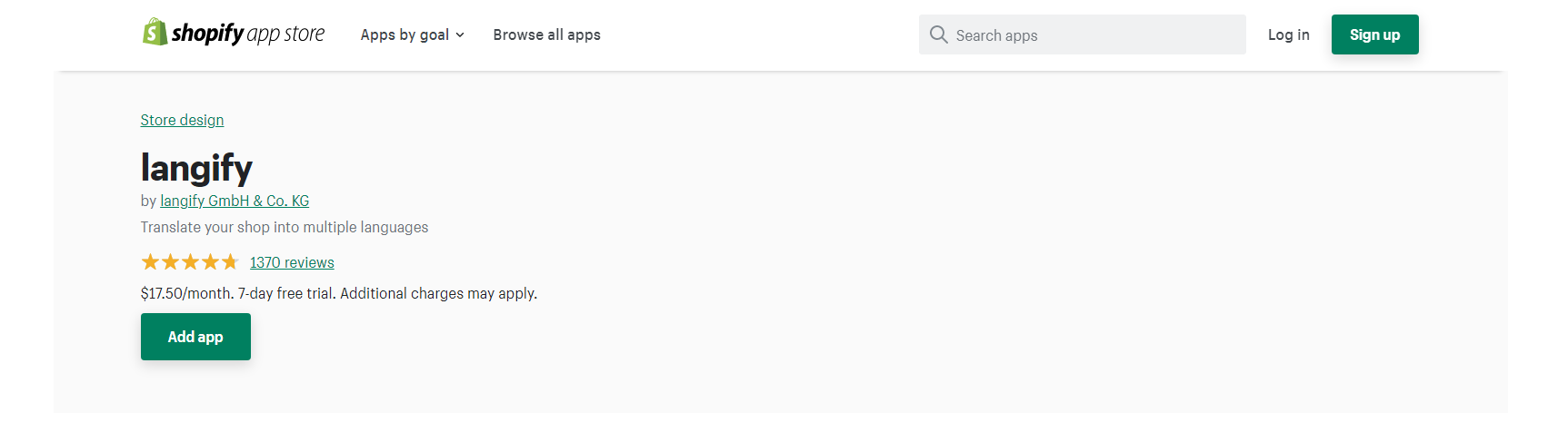 A fundação de Langify é Search Engine Optimization. Custa US $ 17,50 por mês para o plano único do Langify.