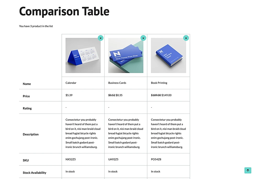 Vale a pena notar, no entanto, que a tabela suporta no máximo quatro produtos por vez. Mas, mesmo assim, você ainda pode habilitar a opção “ Produtos Relacionados ” para mostrar outros itens nos quais seus clientes possam se interessar.