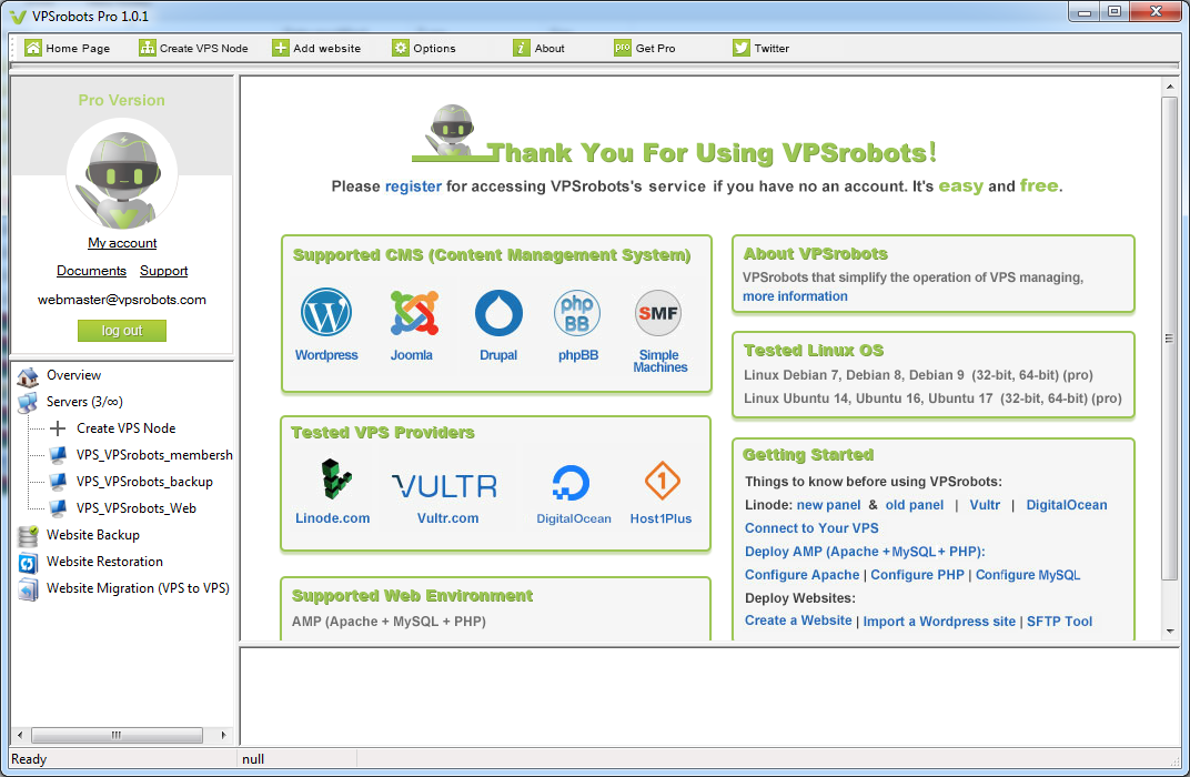 Se você estiver gerenciando várias contas e sites VPS, o VPSrobots foi criado para você. Talvez você seja um amador que dirige alguns blogs hospedados em contas VPS. Talvez você esteja gerenciando vários sites como parte do seu trabalho, esteja você trabalhando em casa ou em um pequeno escritório. Mesmo aqueles que gerenciam um grande número de sites ou contas de hospedagem VPS podem fazer grande uso dos robôs VPS. Realmente não há limite para quantos sites e contas você pode gerenciar com VPSrobots. Tudo é gerenciado por meio de uma instância do software.