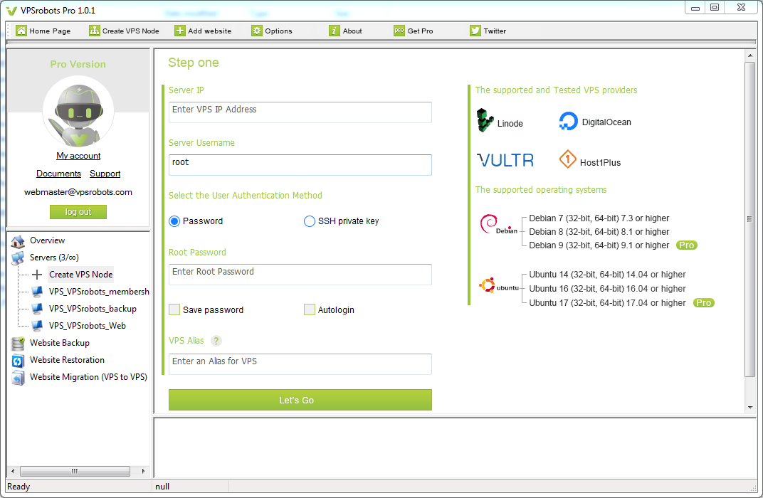 VPSrobots funciona com qualquer host rodando Debian e Ubuntu. Graças a isso, você não deve ficar restrito quando se trata de usar um host VPS com este software.