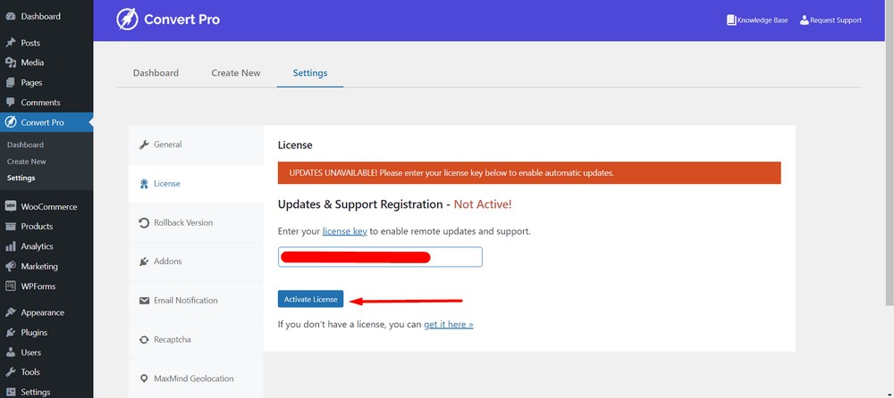 É isso! Você terminou de instalar e ativar o Convert Pro.