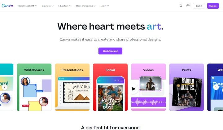 Canva este un instrument AI binecunoscut care este folosit de studenți, designeri de site-uri web, profesioniști etc. pentru diferite tipuri de muncă. Are mai multe șabloane prefabricate care pot fi accesate și editate conform cerințelor.
