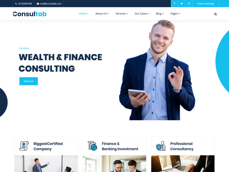 Consultab este o temă WordPress de consultanță în afaceri și financiară cu un design profesional.
