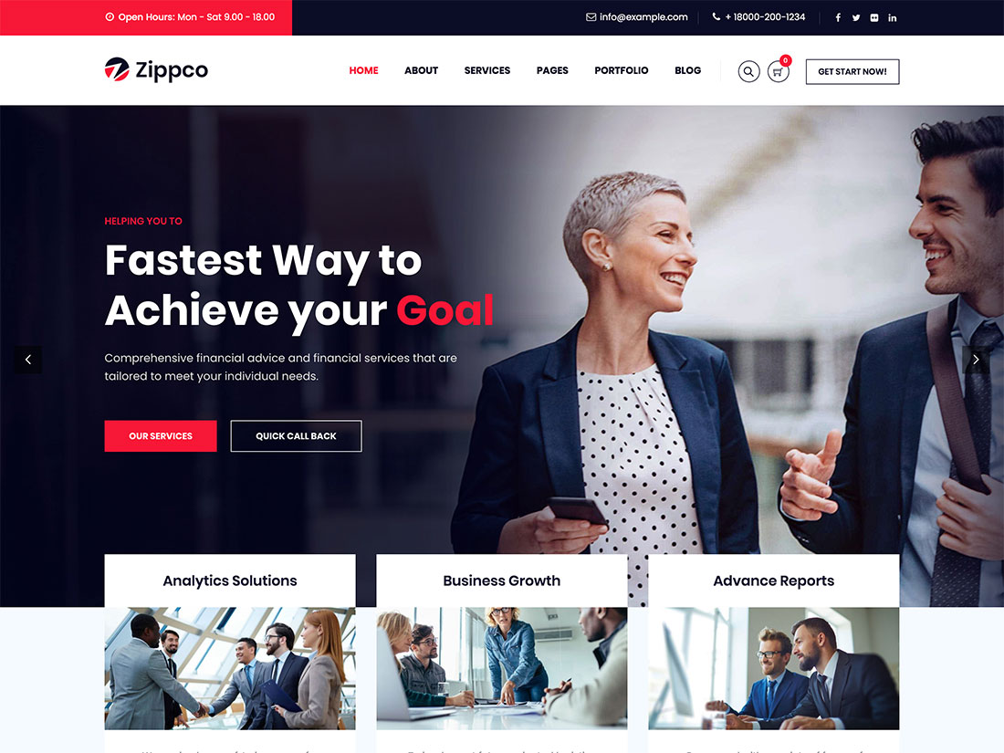 Dacă sunteți în căutarea unei teme financiare WordPress bogate în funcții, cu un design atractiv, Zippco este printre cei mai buni.