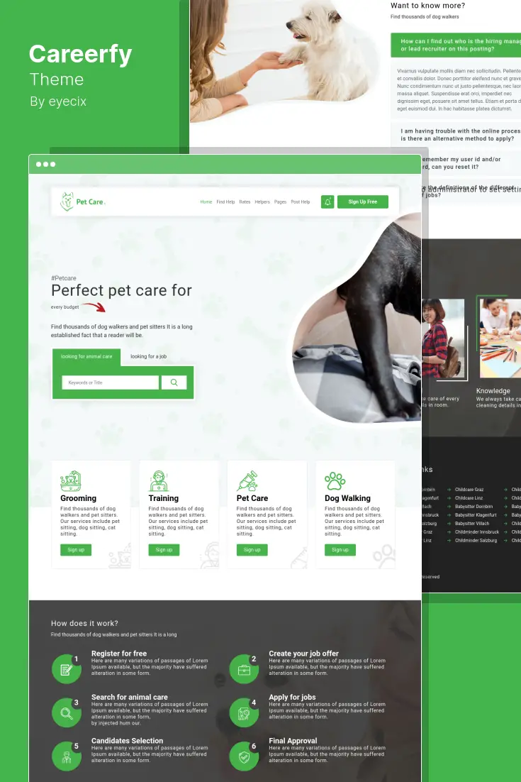 Folosind tema Careerfy, puteți crea un site web complet de locuri de muncă și de recrutare, cu un panou de locuri de muncă complet receptiv. Tema Careerfy de la Eyecix are multe caracteristici valoroase pentru construirea unui site web cu lista de locuri de muncă.