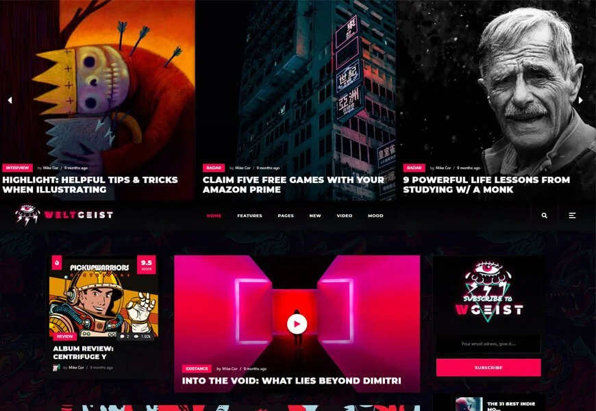 Cu peste 8.000 de variații de aspect al postărilor și peste 50 de elemente de aspect al postărilor, The Issue ar putea fi tema revistei WordPress cu cele mai multe opțiuni de aspect al postărilor. Toate aceste opțiuni de postare vin în demonstrațiile prefabricate care vin cu tema. Puteți deveni mai creativ cu imaginile site-ului dvs., deoarece The Issue vine cu fișiere PSD. Fundalurile mai închise asigură o lizibilitate excelentă; această temă oferă modurile de întuneric și de lumină, între care cititorii dvs. pot comuta folosind o comutare.