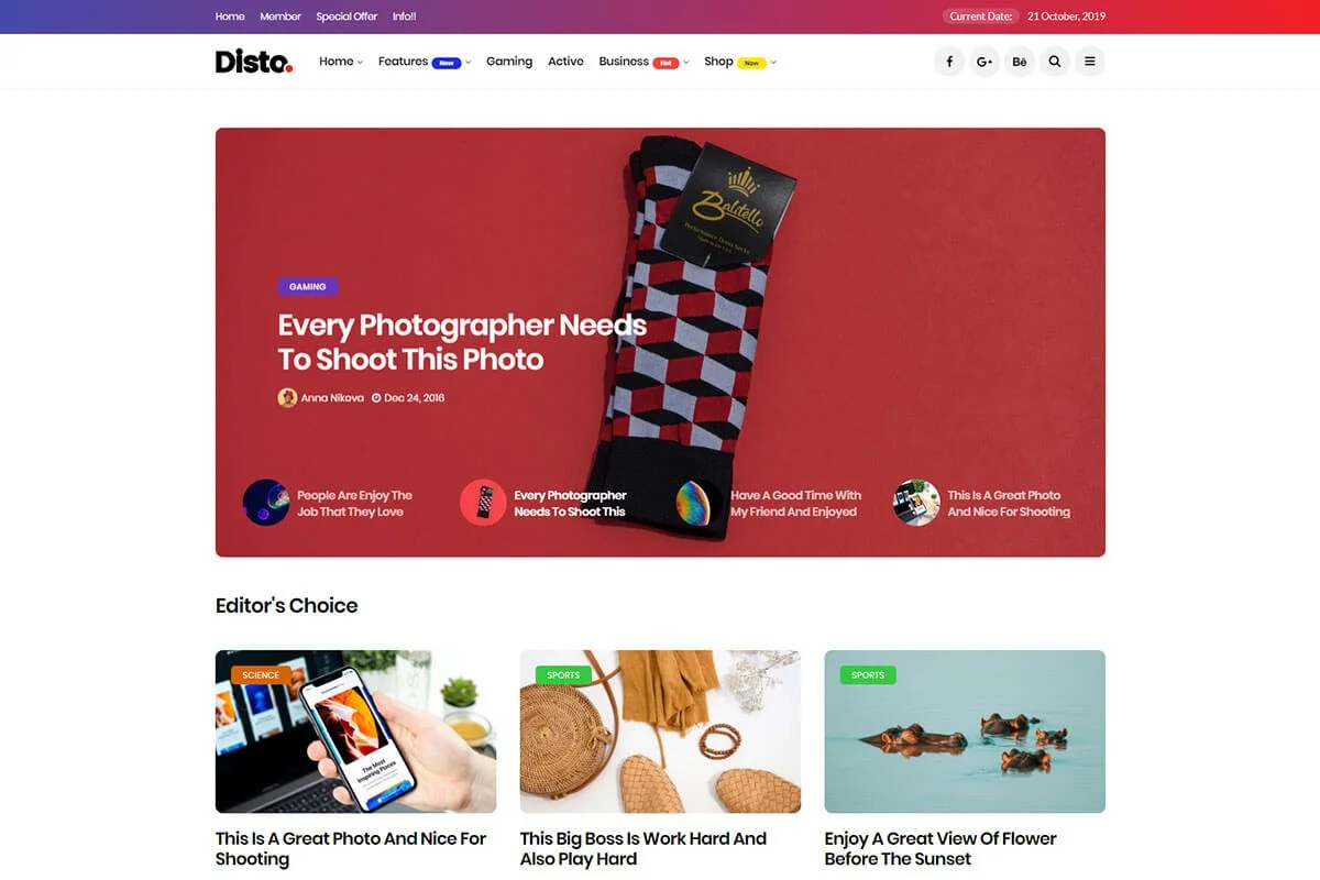 Dacă căutați stil, flexibilitate și varietate, atunci Disto este cea mai bună temă pentru revistă WordPress pe care o doriți. Are un design curat, astfel încât să nu încetinească site-ul dvs. și să nu îl facă să pară aglomerat. Optimizarea Gutenberg vă permite să proiectați aspecte neobișnuite și flexibile de postare. Puteți alege între modurile de întuneric și de lumină pentru unicitate. Pe lângă faptul că are peste 17 demonstrații de pagini de pornire, Disto are peste 100 de combinații posibile de pagini de pornire.